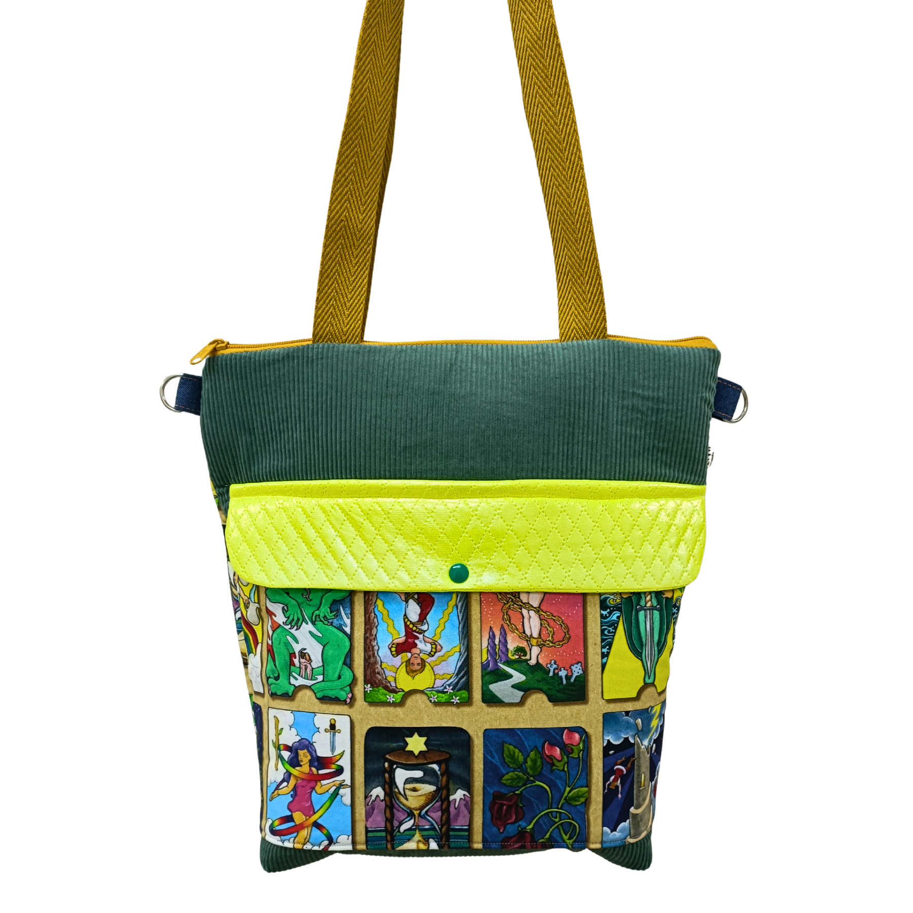 Este Duplo recoge ese universo mágico en un estampado lleno de color, donde las cartas cobran vida en un diseño atrevido y diferente. Perfecto para quienes sienten curiosidad por el Tarot, disfrutan con lo místico o simplemente buscan un bolso original que refleje su personalidad.